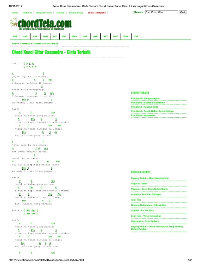 Chord gitar dan lirik lagu cinta terbaik by cassandra, sangat menyentuh hati cinta terbaik lirik cassandra. Jujur saja ku tak mampu · berikut ini chord dan lirik lagu cinta terbaik yang dipopulerkan .